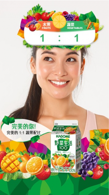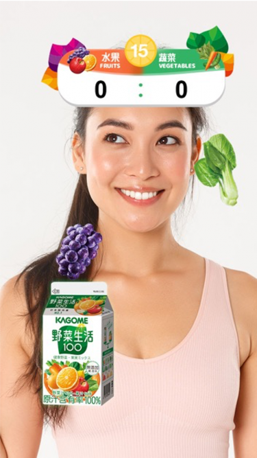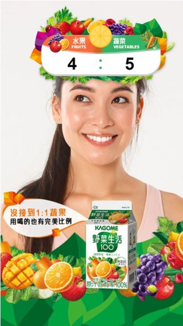 透過產品特色中的蔬菜與水果,結合接接樂遊戲,在遊戲結果中分為完美比例與非完美比例,加深產品為完美比例的印象。