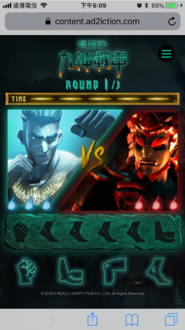 此創意連結電影內容,讓主角奧特與反叛BOSS塔哈對打,並且結合泰拳招式(拳、肘、膝、腳),透過簡單上手的箭頭指令輸入來降低遊戲門檻,增加遊戲互動趣味並達到宣傳電影效果。