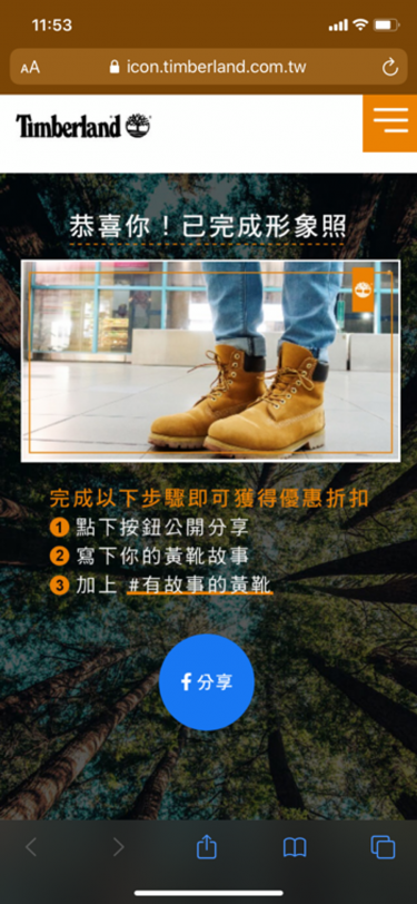 以有故事的黃靴為主題,讓User上傳穿著經典黃靴的照片並在社群分享,連結對品牌的信任與好感。