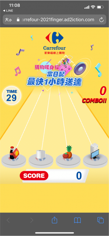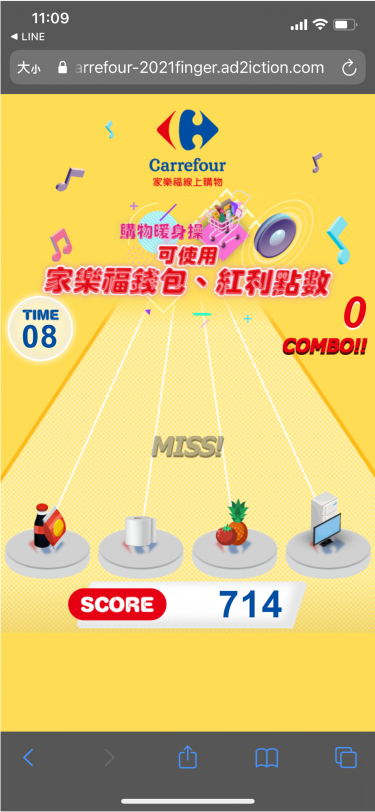 提升品牌的知名度,溝通品牌的線上購物優勢,以完成節奏遊戲獲得折扣碼,吸引User互動並參加抽獎。